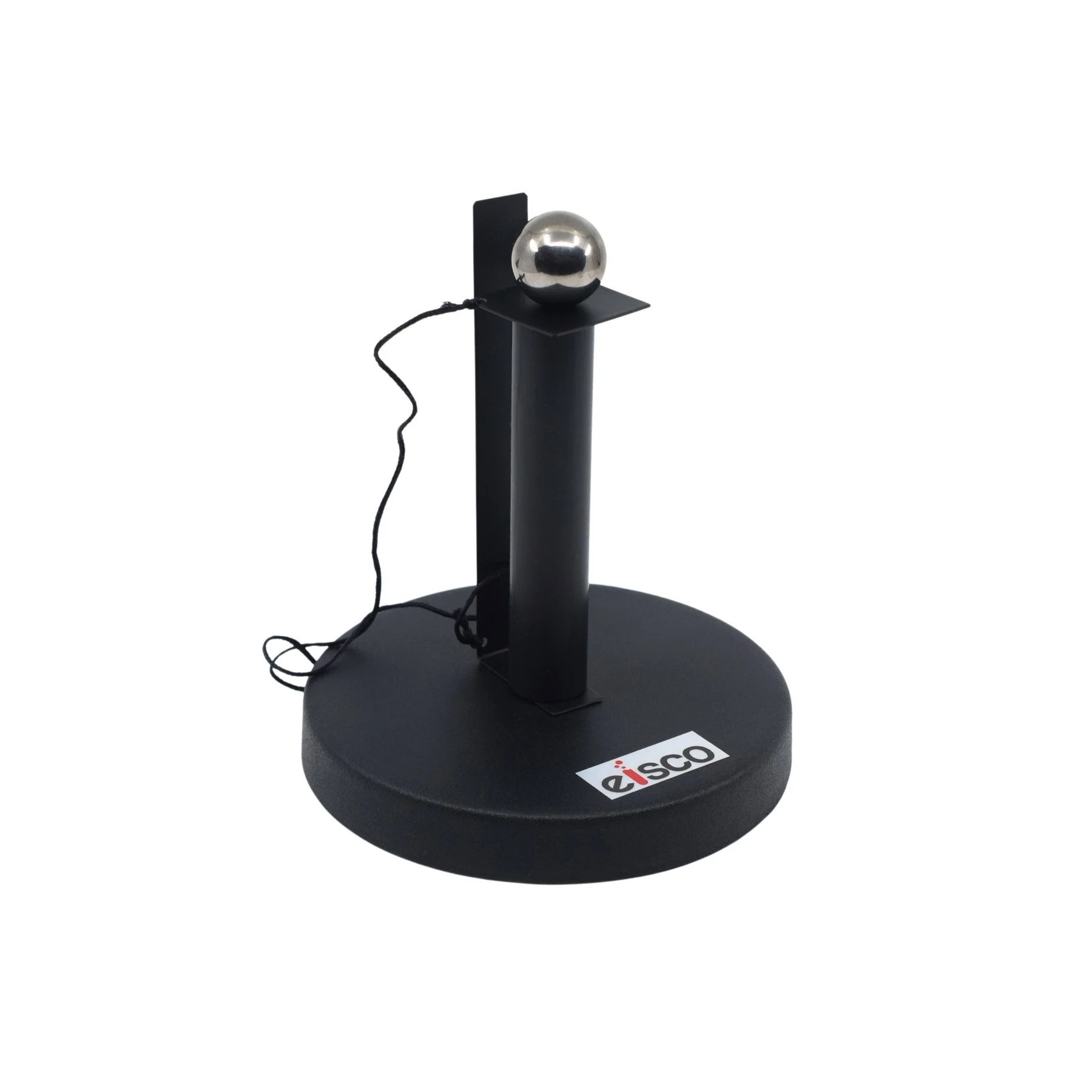 Stand with a receptacle for a ball at the top. 18 mm ball, a square piece of sheet metal and a trigger of sheet metal included. Pulling and releasing the trigger causes the square sheet to slide out from under the ball, dropping the ball in the receptacle by inertia.